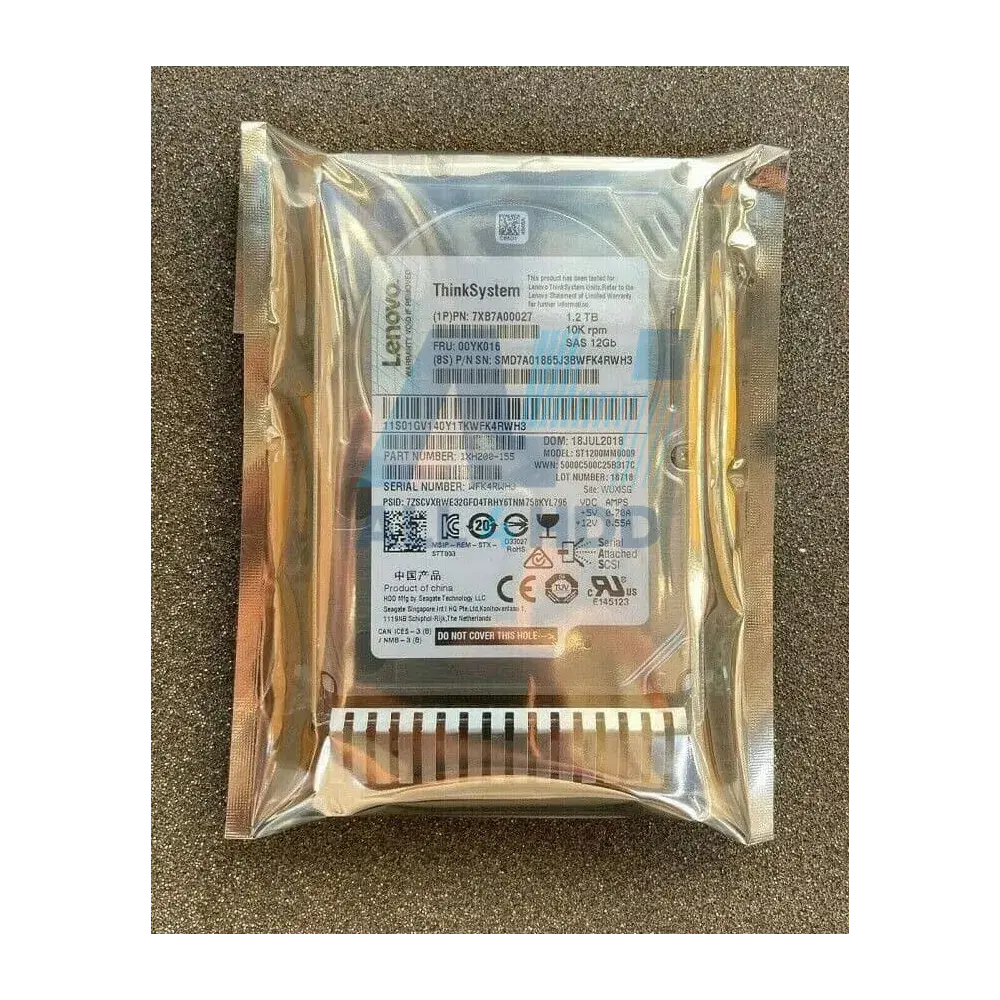 The Lenovo 7XB7A00027 1.2TB 10K SAS 12Gbps 2.5-Inch Hard Drive is purpose-built for enterprise systems that demand speed, reliability, and maximum uptime. As a brand new original Lenovo part, it integrates smoothly into Lenovo servers and storage units, ensuring outstanding performance for critical applications, high-volume databases, and advanced data processing environments.