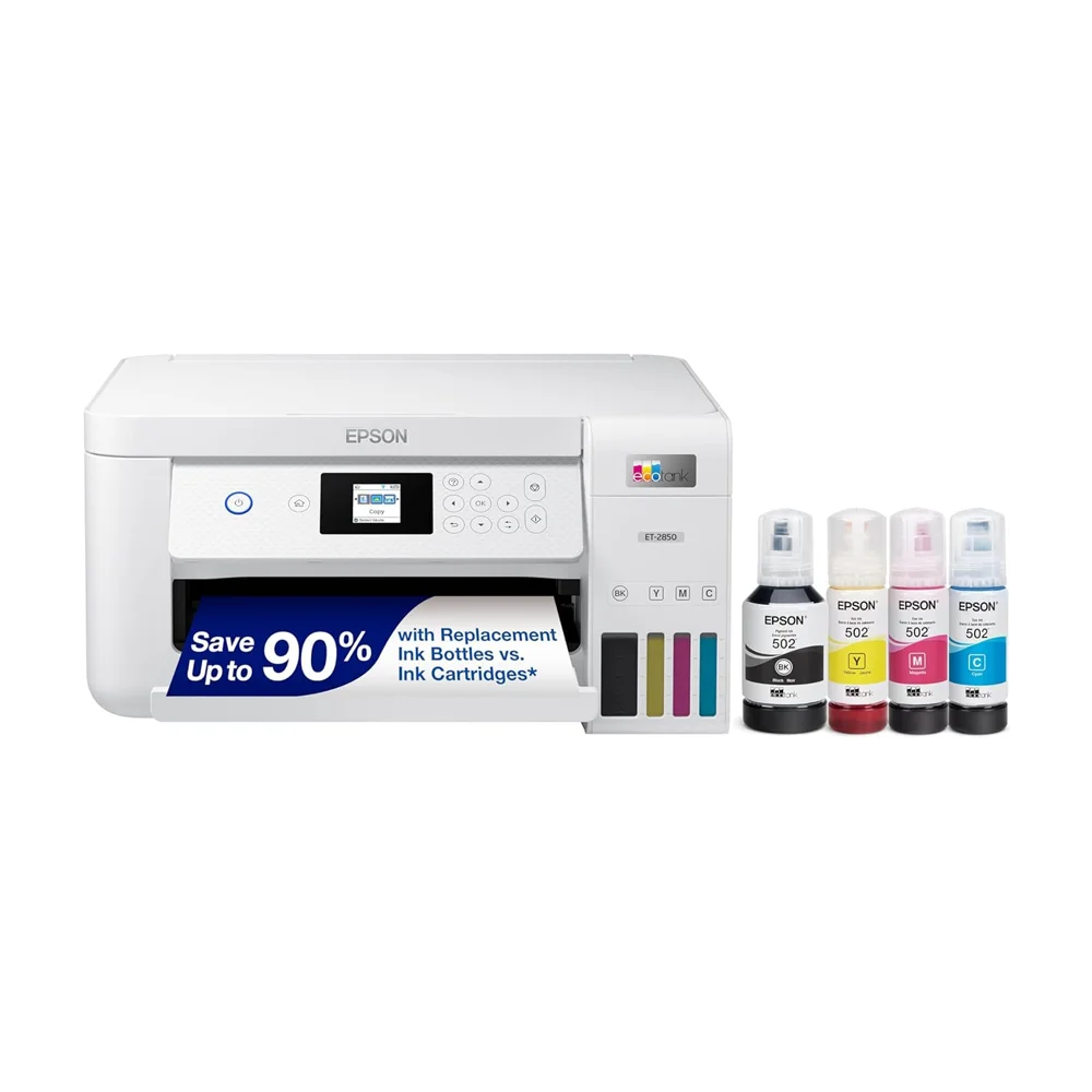 • Model: Epson EcoTank ET-2850 – Efficient all-in-one printer with refillable ink tanks for low-cost color printing